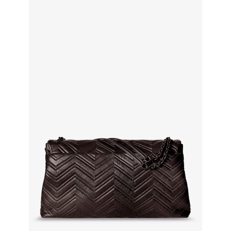 Flap closure with GG button Chain shoulder strap Internal zip pocket Internal lining Made in Italy Leather W: 47cm, H: 25cm, D: 9cm SKU:850653AAFS12019
